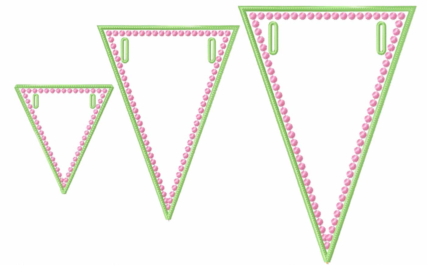 The bunting uses an applique type format sewn on the stabilizer and fabric backing applied to the back of the double tearaway stabilizer. The designs also come on two parts, to make it easier to add a design or letter. Help available HERE