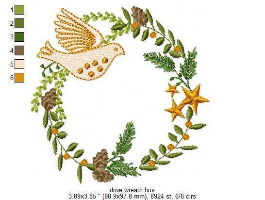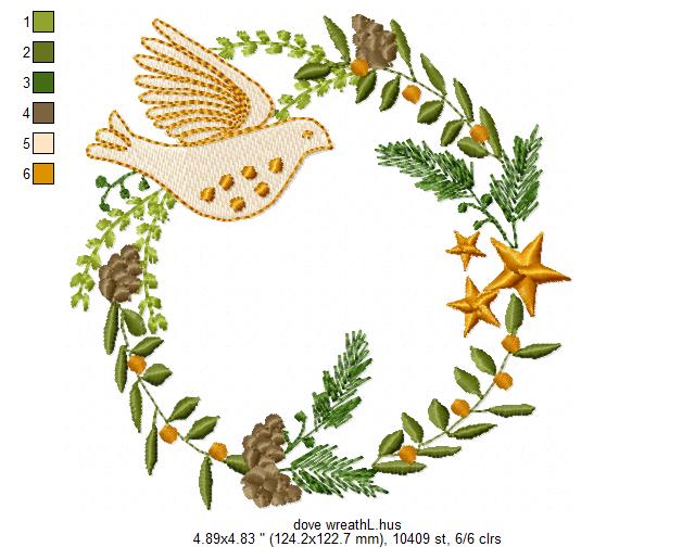 A perfect Classy wreath with a Christmas Dove in 2 sizes, for a monogram, or a little saying, a name? Almost 4" and just about 5" The exact sizes are in the images. They sew out really fast.