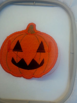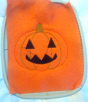 Sew the pumpkin details, leaving the last outline to sew after you have added the backing.e.